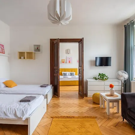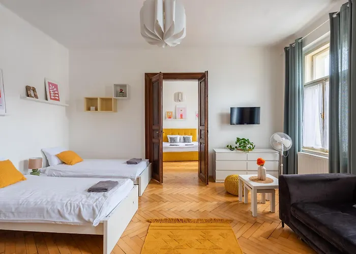 **Welcome to the Residence Tesnov Apartment**, a modern retreat situated just 1.5 kilometers from the vibrant center of Prague. Perfectly positioned in Prague 1, the residence offers effortless access to the city's rich medieval heritage and captivating points of interest. Guests will appreciate the seamless connectivity to public transport, ensuring that the wonders of Prague are easily reachable, while the nearest airport is conveniently located just 13 kilometers away, with a paid airport shuttle service available for added comfort.